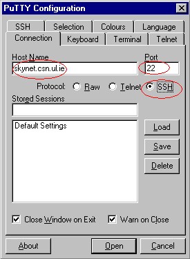 7: Into 'Host_Name', type 'skynet.csn.ul.ie' - as shown.